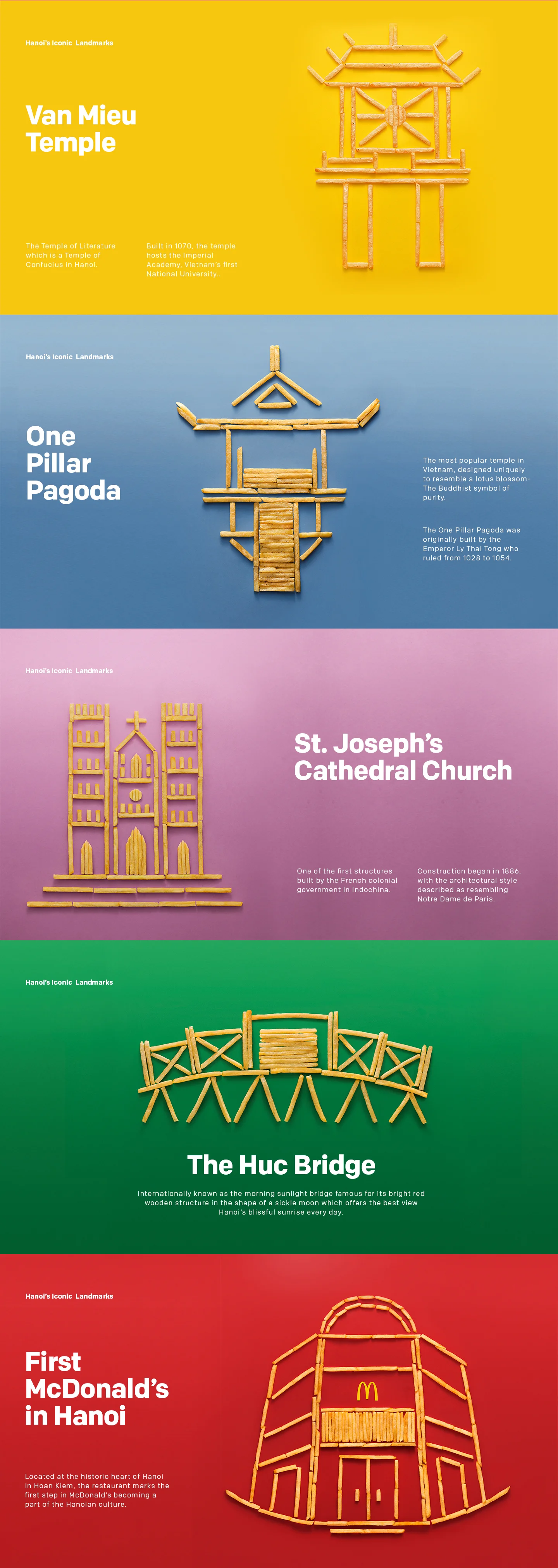 And McDonald's wants to be one of the symbols, as a way to connect with Hanoi culture and part of Hanoian’s pride. In anticipation for the first McDonald’s restaurant in Hanoi, Vietnam, we honored the city’s most iconic landmarks with the McDonald’s iconic menu - Mc Fries.